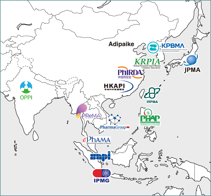 APACは、アジアの11の経済圏から14の研究開発型製薬団体が加盟しています(2025年4月現在)。