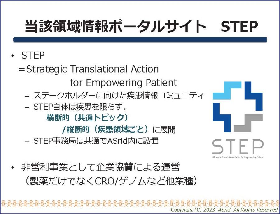 最後に、情報の集約と発信を目的とした「STEP」プロジェクトです。各ステークホルダーから情報を集め、サイトに掲載しています。この取り組みで患者会がない疾患にも情報を届けることができています(図4)。